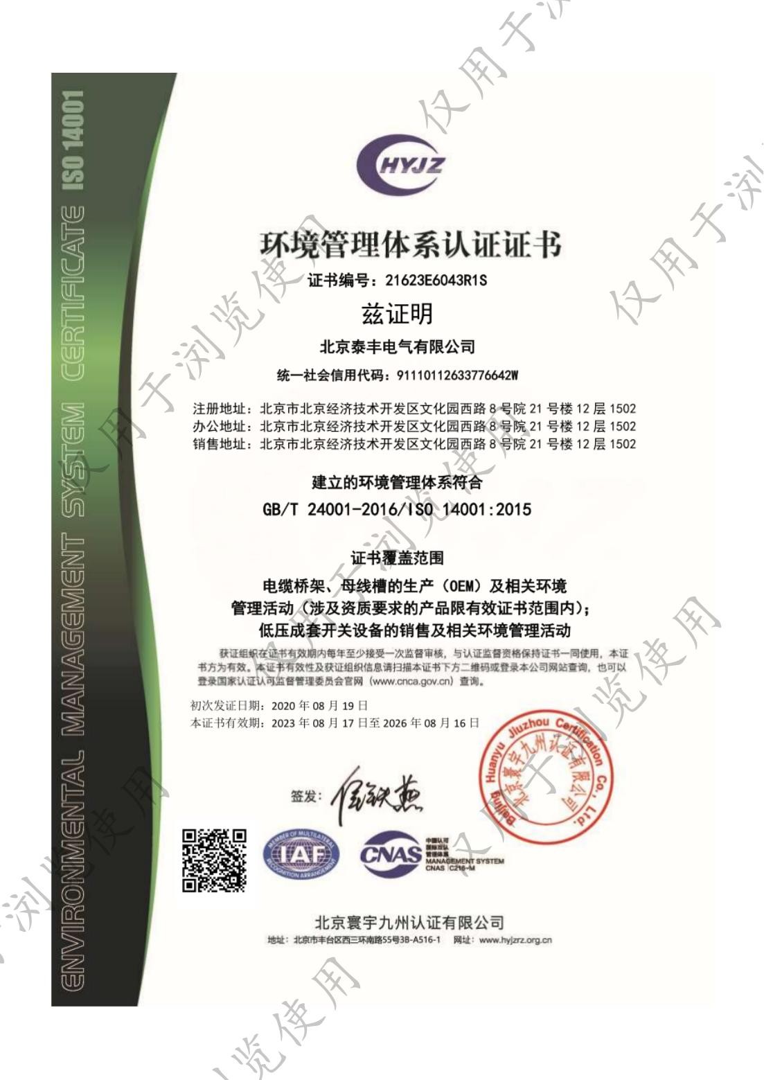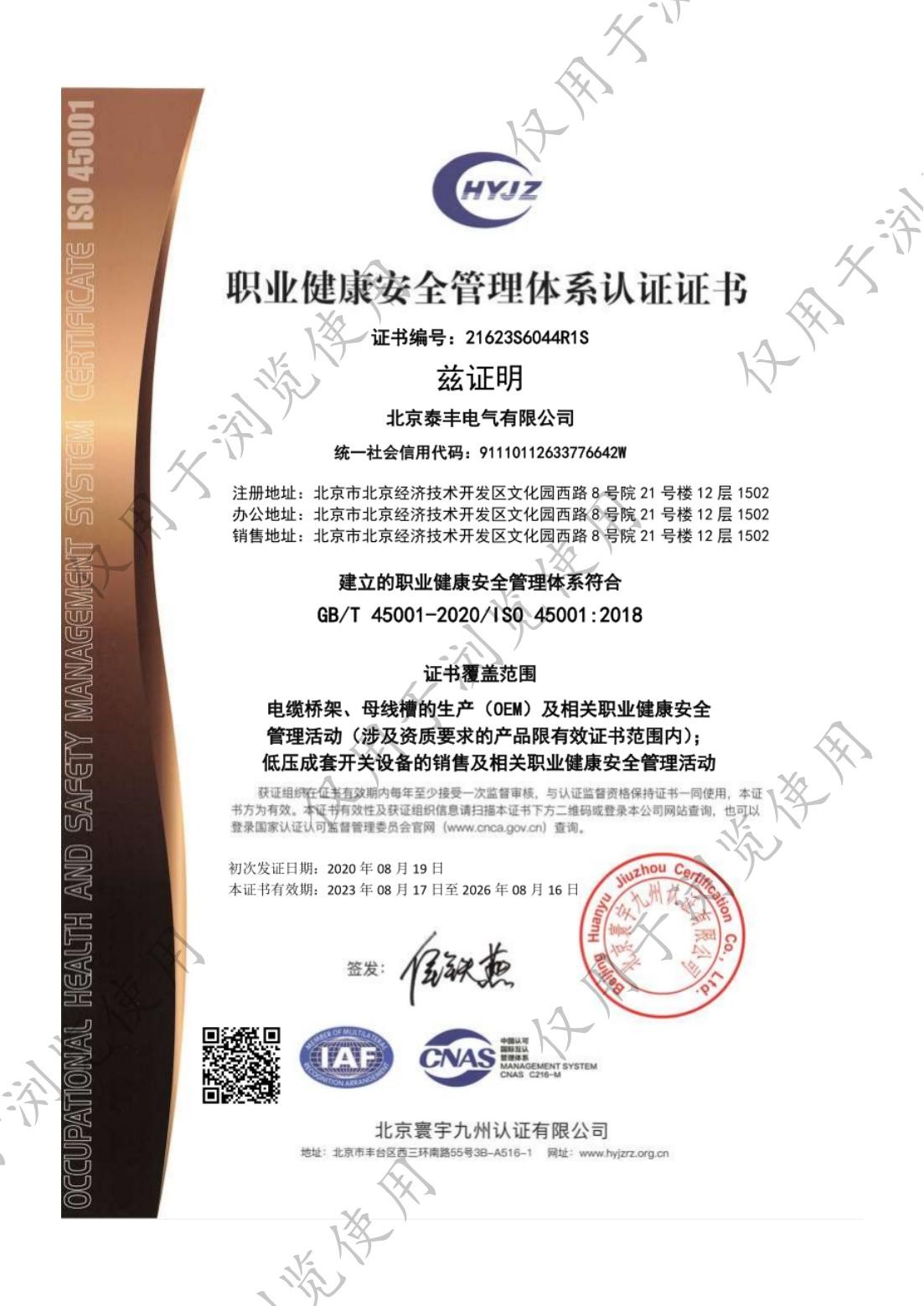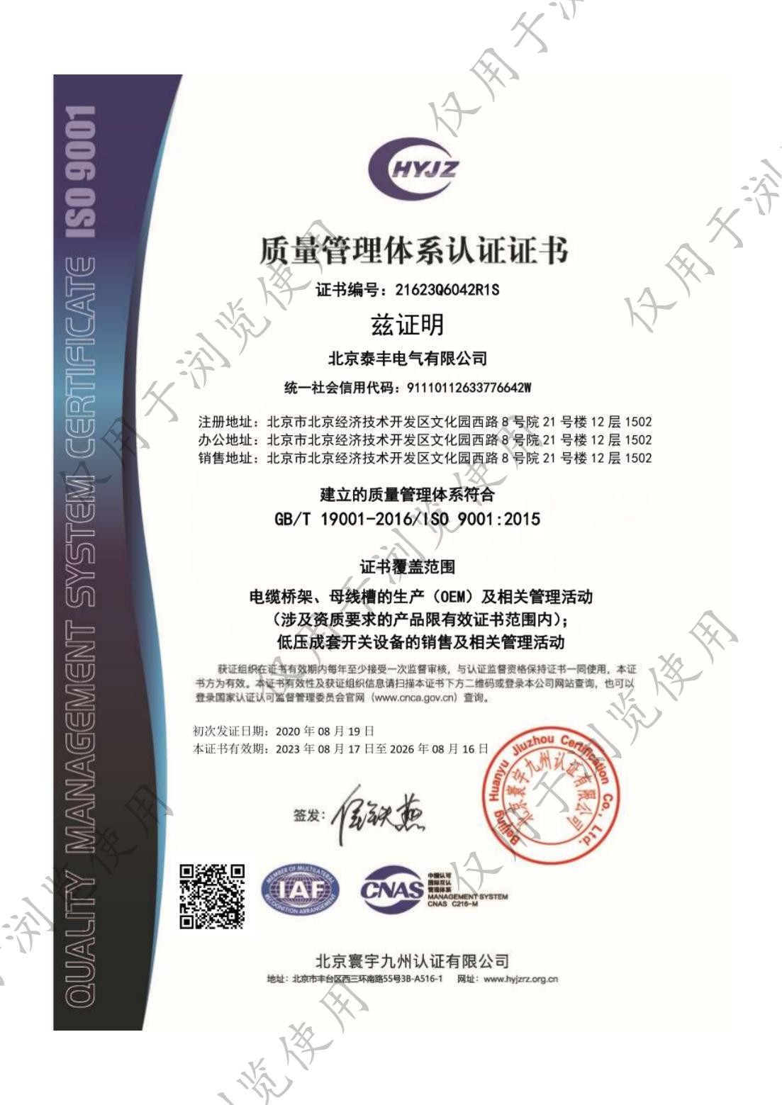 ■ 生产的母线槽系列、电缆桥架顺利地通过了IS09001标准质量体系认证、母线槽系列均通过CCC认证,母线槽电流达到6300A,2006年5月电缆桥架系列产品顺利通过了CQC自愿性产品认证。
